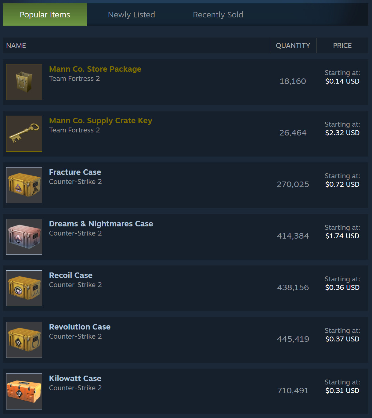 The catch? It only works for items that are completely identical to each other. That means cases, stickers, patches, graffiti, and similar stuff. These items are fungible, every copy is exactly the same as every other copy, so Steam can batch them together.